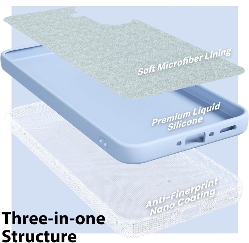 Матиран и много гладък силиконов гръб Silicone Lite за Samsung Galaxy S25, който ще защити гърба и страничния корпус на телефона.Калъфът има елегантен и семпъл дизайн с гладка матирана повърхност в светло син цвят, силиконова защита около камерите и е подплатен с микрофибър от вътрешната страна на кейса.Изглежда страхотно и ще придаде модерен тренд на телефона.С този кейс имате пълен достъп до всички бутони на телефона.